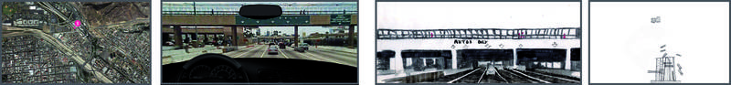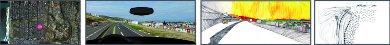 Mon premier commence avec la vision satellite. Sur ces vues depuis le ciel, je fixe le point de vue de la conductrice, la direction de son regard.